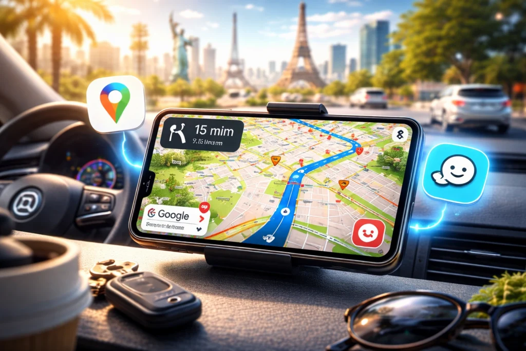 Além disso, aplicativos como Google Maps e Waze funcionam globalmente, são fáceis de usar e ajudam você a chegar ao destino com tranquilidade.